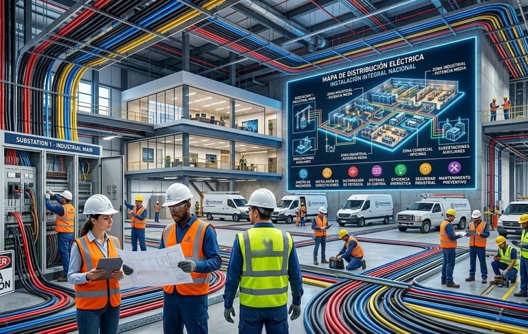 Nos especializamos en la ingeniería y construcción de instalaciones eléctricas, ajustándonos a las normativas más exigentes como NTC 2050 y RETIE, asegurando que tus instalaciones cumplan con los más altos estándares de seguridad y eficiencia. Realizamos: